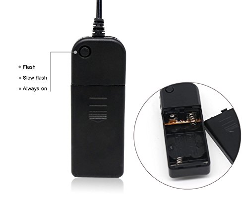 - ✔️EASY TO USE THE SINGLE-BUTTON STYLE LIGHT GLASSES: Just simply press the smartly designed button on the battery pack then vary the EL glasses to regulate 4 modes: flash, snow flash, always on, off. And with independent battery pack with 2 one.5V AA dry batteries will give the adequate power to confirm an extended continuous light time (two hours a minimum of betting on your battery capability used). The pack and glasses area unit connected by a 35" wire.