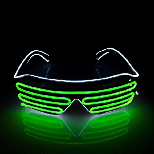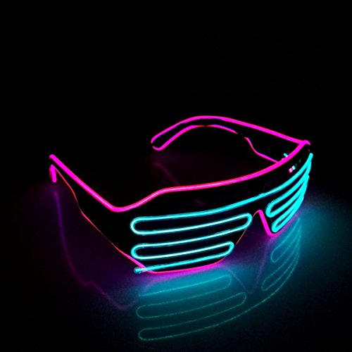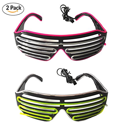 - ✔️HIGH-QUALITY AND ERGONOMIC COSTUME GLASSES DESIGN: Just rock any show or memorable occasion and catch anybody’s eyes by having our fashionable neon led glasses made from high-quality plastic & PVC on to stay vibrant and lit up for anywhere without getting your vision blocked off or causing you discomfort. With a stylish black shiny plastic frame and AC glasses, we’re sure that the shutter shade glasses design will won’t obstruct your vision and enable you to easily see through!