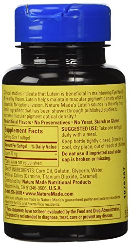 Clinical studies indicate that Lutein, an antioxidant compound found in many fruits and vegetables, is beneficial in maintaining eye health and healthy vision. Lutein helps maintain macular pigment density, which is essential for optimal vision. Nature Made's Lutein source is the only free lutein ingredient that has been shown through published studies to increase macular pigment optical density.