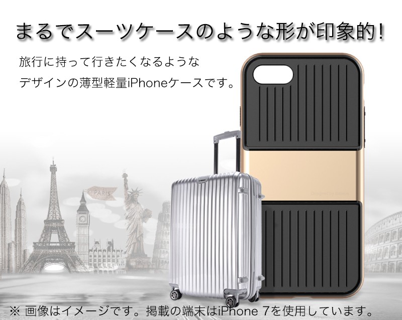 ★「対応機種」iPhone7(アイフォン7)、iPhone7 Plus(アイフォン7 プラス)★「カラー」ローズゴールド、ゴールド(金)、シルバー(銀)、グレー(灰)、ジェットブラック(黒)★「商品特徴」旅行に持って行きたくなるようなデザインの薄型軽量iPhoneケースです。ポリカーボネート素材のハードケースでTPU部分をカバーする構造なのでさらに高い保護力を発揮します。ストラップホールも配置されてますので、外れて落ちる心配もありません。★「キーワード」アイホン7 / アイホン7プラス ケース おしゃれ 耐衝撃 カバー オシャレ ハイブリッド素材 ポリカーボネート / TPU 軽量 薄型 軽い 薄い 衝撃吸収 ストラップホール配置 耐久性の高い設計 高い保護力