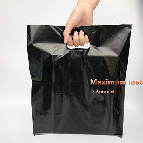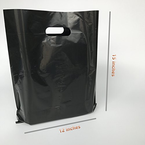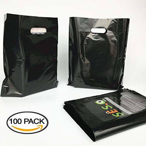 SES.CO 12x15 Inches Glossy Black Plastic Merchandise Bags Die Cut Shopping Bags Retail Bags(100 Pack)