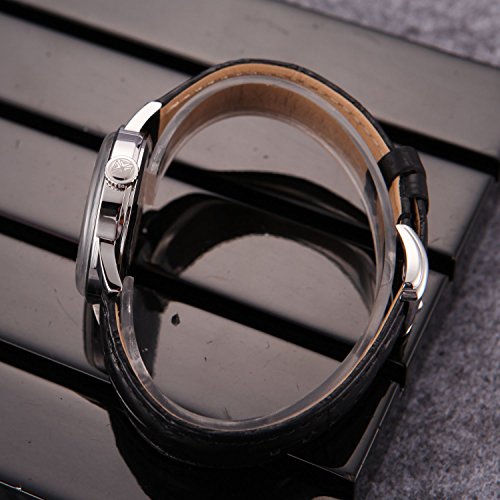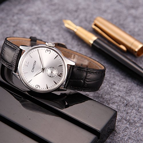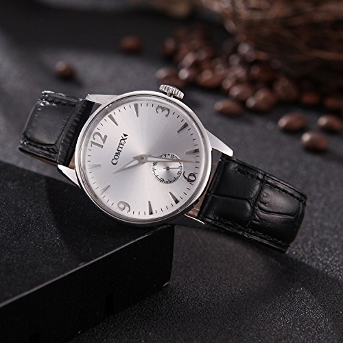 Comtex 손목시계 맨즈 스몰 세컨드 아날로그 가죽 밴드 쿼츠 손목시계 남녀 겸용 시계 야광 인덱스 블랙