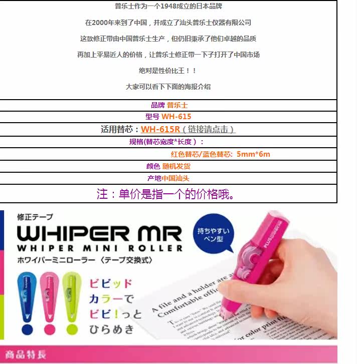 新款日本PLUS普乐士|修正带WH635/615糖果色系列智慧滚轮改错带