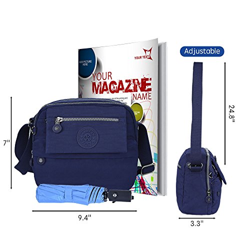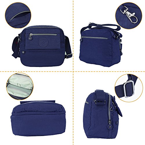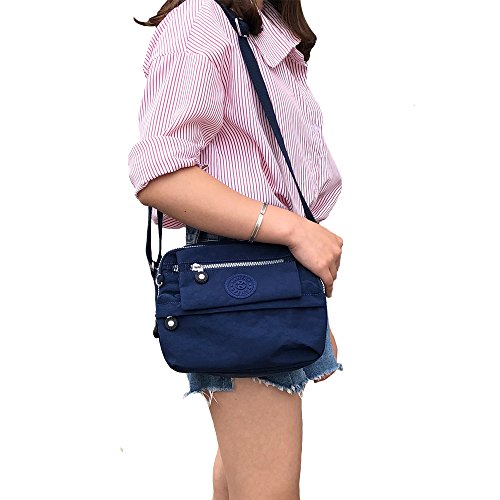 Nylon Crossbody Bags Shoulder Purse Medium Lightweight Durable Travel for Women for Teens with 7 Zipper Pockets