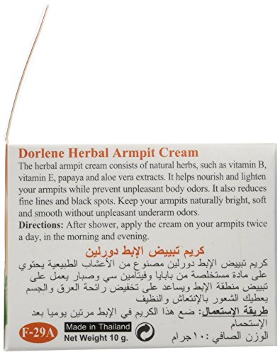 GLUTATHIONE, Armpit Underarm WHITENING Lightening Cream Herbal Deodorant Lightening Armpit ntiperspirant Cream The herbal armpit cream consists of natural herbs, such as vitamin B, Vitamin E ,Papaya and Aloe Vera extracts. It helpnourish and Lighten your armpits while prevent unpleasant body odors. It also reduces fine line and black spots. Keep your armpits naturally bright, soft and smooth without unpleasant underarm odors. Ingredients: Mineral Oil Vitamin B, Vitamin E ,Papaya and Aloe vera extracts. Direction : After shower ,apply the cream on your armpits twice a day ,in the morning and evening. Quantity:1 Boxes & A free gift Net wt. : 10g. Condition : New(Factory sealed) Exp.date : 05/2014Feature