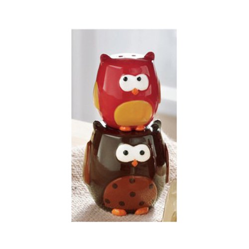 Stacking Owls Hand Painted Earthenware Salt & Pepper Set
