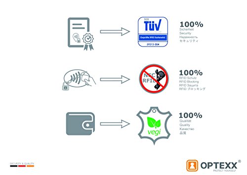 OPTEXX RFID / NFC Personalausweis | Kreditkarten | Bankkarten Kartenetui Charly aus Vegi Leder TUV gepruft und zertifiziert