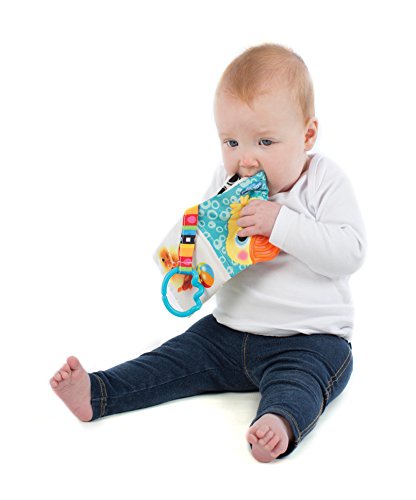 Vibrant colors and patterns for visual stimulation-including high contrast stripes and bold primary colors | Gross motor skills can be practiced by turning pages, grabbing and swinging the book