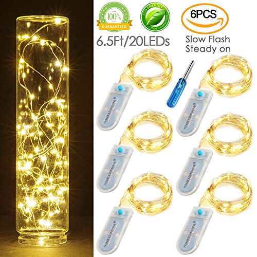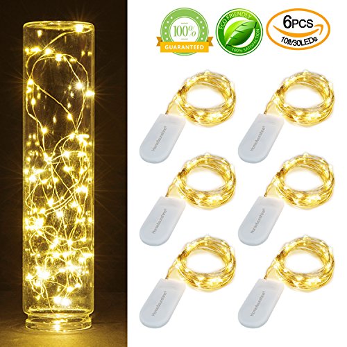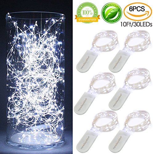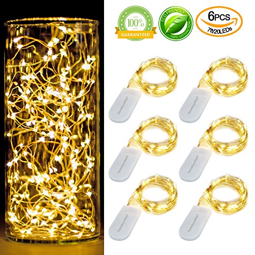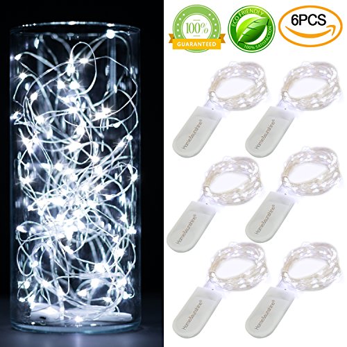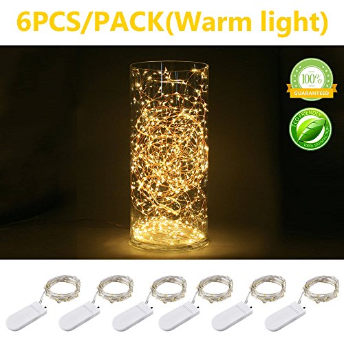 Very good design tools:6pcs lights per packing,battery compartment extension cord is 0.7ft,each light is with 6.5 feet flexible thin copper wire with 20pcs bright micro leds. Warm White (2600-2800K),They glint in the dark, For your patio, deck, front porch, child's bedroom,Festival, Floral Decoration,Wedding,and Party. And the copper wire disappeared into the night, Leaving only light.