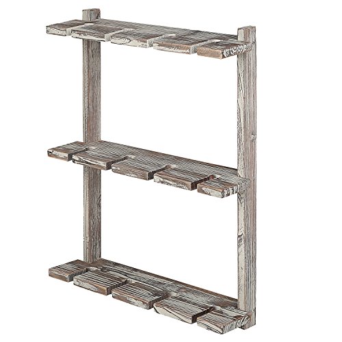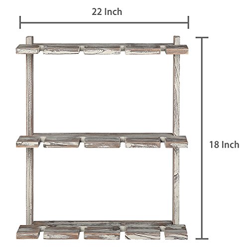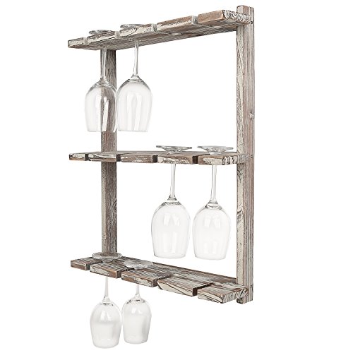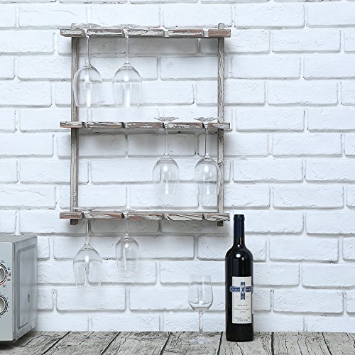 Distressed Barnwood Brown Wall Mounted 12 Wine Glass Holder Rack, Inverted Stemware Display