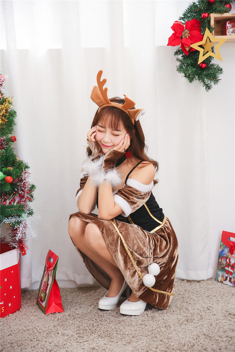 SET:ワンピース+手袋+ベルト+頭飾り+颈飾り