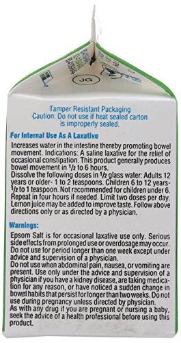 -. Binding : Misc. -. Brand : White Mountain -. EAN : 0085275506181 -. Feature : 4 Container's each 1 lb Total 4lb. / 100% Natural Mineral Epsom Salt - Magnesium Sulfate / A Sparkling for Minor Sprains and Bruises / A Saline Laxative for the Short-term Relief of Constipation / The Trusted Natural Remedy You Can Use Every Season of the Year -. NumberOfItems : 4 -. ProductGroup : Beauty -. ProductTypeName : BEAUTY -. Size : 16 Ounces -. Title : White Mountain Epsom Salt 1 Lb / 16 Oz Container (Pack of 4) -. UPC : 085275506181