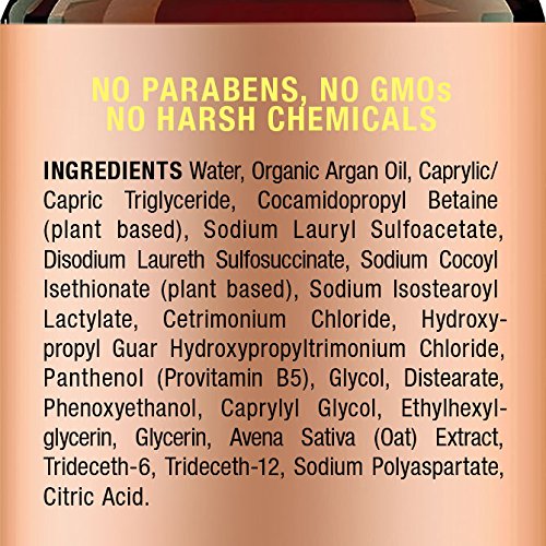 Organic Argan Oil - prevents drying and environmental damage by coating the hair shaft. The oil seals in moisture and smooths fly-aways, making hair more manageable and less prone to breakage from brushing and styling. Rich in Vitamin-E, Argan oil nourishes hair, repairing split ends, and increases hair's shine and overall healthy appearance
