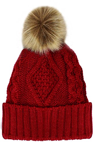 -. Title : Luxury Divas Chunky Cable Knit Beanie Pom-Pom Hat With Fleece Lining
