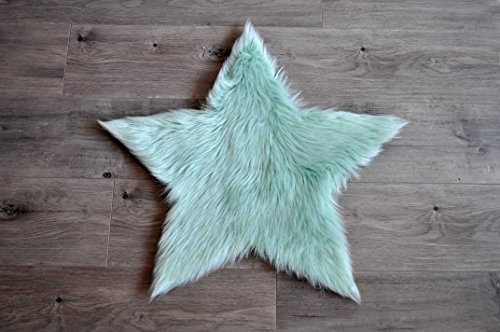 Machine Washable Faux Sheepskin Mint Star Rug 3' x 3' - Soft and silky - Perfect for baby's room, nursery, playroom (Star Large Mint)