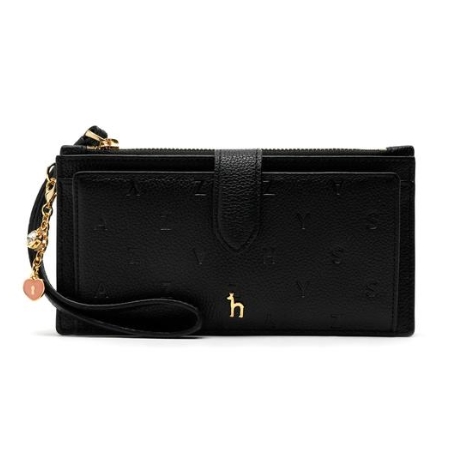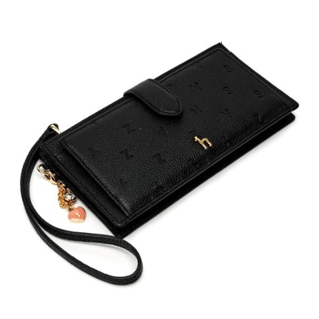 로고 레터링 음각 패턴으로 세련된 외관을 보여주는 장지갑입니다.