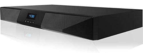 Compatible With All TVs And Easily Connects to All Generations of iPhones, iPads, Android Tablets, Android Smartphones, Amazon Fire Tablets, Kindles, Galaxy Smartphones & Tablets, And Much More! Integrated Bluetooth Wireless Technology, Built-In Subwoofer - Amplifies And Enhances Sound Wireless High Definition 2.1CH Stereo Sound Bar For TV Built-In FM Radio, Remote Control Included AC Powered, Led Display For Ease Of Use, Backlit Buttons For Easy Navigation, 3.5mm Auxiliary Jack For Alternative Wired Use Serves as a Platform For Most Flat Panel UP to 55" or 110 Pound, No Wall Mounting Or Additional Hardware Required