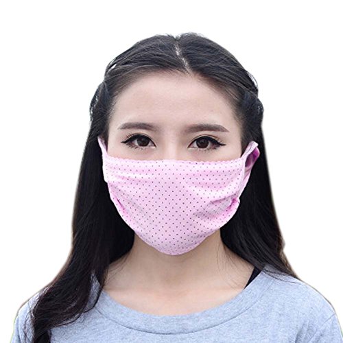 -. Title : Summer Thin UV Protection Dust Proof Cotton Sanitary Mask, Pink Dot