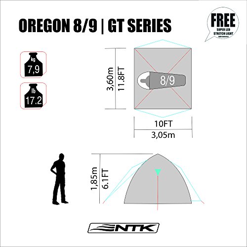NTK Oregon GT 8 to 9 Person 10 by 12 Foot Outdoor Dome Family Camping Tent 100% Waterproof 2500mm, Easy Assembly, Durable Fabric Full Coverage Rainfly - Micro Mosquito Mesh for Maximum Comfort