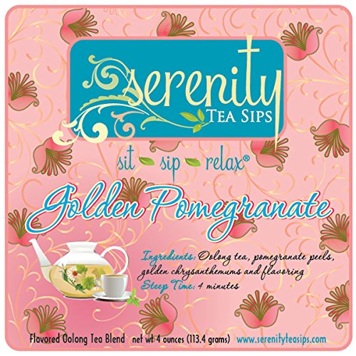 -. Title : Serenity Tea Sips Golden Pomegranate - 4 oz. loose leaf oolong with notes of pomegranate and chrysanthm