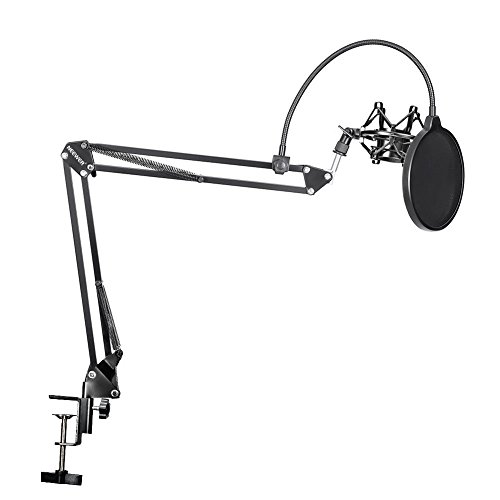 -. Binding : Electronics -. Brand : Neewer -. EAN : 0699618404937 -. Feature : Kit includes: (1)Black NB-35 Mic Suspension Boom Scissor Arm Stand with (1)Table Mounting Clamp and (1)Mic Clip Holder + (1)Black NW(B-3) Pop Filter + (1)Black Metal Mic Shock Mount Holder. NOTE: Microphone, Foam Windscreen and Audio Cable NOT INCLUDED / NB-35 Mic Stand features solid steel construction and adjustable design. Can be easily adjusted to the suitable angle and height to show your perfect voice. *Max load: Approx 53oz / 1.5KG*. PlEASE NOTE: This Stand is NOT Suitable for Blue Yeti USB Microphone / Comes with one table mounting clamp. With an adjustable positioning screw, can easily clip to any desktop up to 1.7"/4.5cm thick. PLEASE CHECK the thickness of your table BEFORE ordering / NW(B-3) Pop Filter with double nylon net helps you with prevention against plosion and popping to get your best vocal recordings. Features flexible metal gooseneck and adjustable swivel mount / Mic Shock Mount isolates most studio condenser mics from physical vibration, floor, and stand noise. NOTE: Fits for mic of 43-46mm Diameter. PLEASE VERIFY your microphone size BEFORE ORDERING -. IsAutographed : 0 -. IsMemorabilia : 0 -. Label : Neewer® -. Manufacturer : Neewer® -. Model : Neewer -. MPN : 90087700 -. PackageQuantity : 1 -. PartNumber : 90087700 -. ProductGroup : Musical Instruments -. ProductTypeName : SOUND_AND_RECORDING_EQUIPMENT -. Publisher : Neewer® -. Studio : Neewer® -. Title : Neewer NB-35 Microphone Suspension Boom Scissor Arm Stand with Mic Clip Holder and Table Mounting Clamp & NW(B-3) Pop Filter Windscreen Mask Shield & Metal Microphone Shock Mount Kit -. UPC : 699618404937