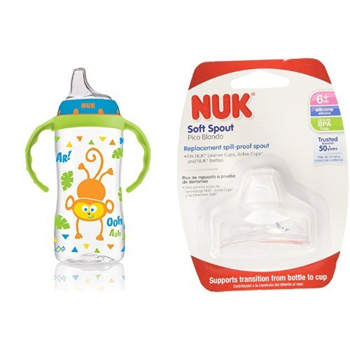 -. Binding : Product Bundle -. Brand : NUK -. Color : Jungle Designs -. Feature : NUK Jungle Designs Large Learner Cup in Boy Patterns, 10-Ounce / Replacement Silicone Spout, Clear / Items Shipped Separately -. ProductGroup : Baby Product -. ProductTypeName : BABY_PRODUCT -. Title : NUK Jungle Designs 10-Ounce Large Learner Cup in Boy Patterns with Replacement Silicone Spout