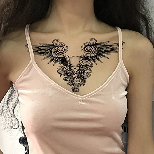 TAFLY Temporary Tattoos Sticker for Women Sexy Wings Designs Chest Fake Long Lasting Body Art Transfer Tattoos 3 Sheets