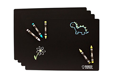 LET YOUR LITTLE ONES FEEL THE JOY THAT COMES FROM USING THEIR IMAGINATION! End device screen time at the table with the Imagination Starters® Chalkboard Placemats and Dry Erase Crayons and let them draw, color, doodle, or practice writing letters and words. Whether they show off a masterpiece work of art, doodle, or write, they'll be using their imagination and exercising their creativity.