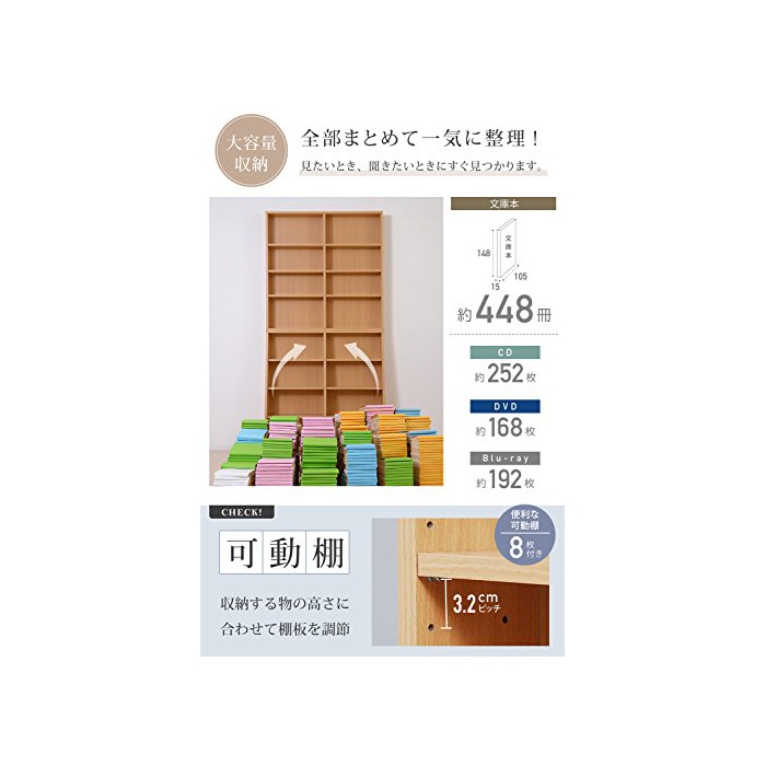 수납량:(문고본)약336권/(코믹)약224권/(DVD)약256개/(CD)약304개/(비디오)약168개