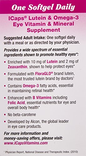 SYSTANE ICAPS Eye Vitamin & Mineral Supplements are designed to support healthy eyes. The vision health formula supports eye health in people at risk for Age-Related Macular Changes. The suggested adult intake is one softgel per day with a meal or as directed by your physician. SYSTANE ICAPS provide a wide spectrum of important ingredients shown to support eye health and vision. Lutein and Zeaxanthin are part of a group of antioxidants called carotenoids, which are yellow, orange and red pigments synthesized by plants. Zinc is an essential trace mineral that is highly concentrated in the eyes, mostly in the retina and the underlying tissue. Vitamins A, C and E are three vitamins that scientists have identified as particularly important to eye health. Omega-3 Fatty Acids are essential fatty acids that your body uses to produce new cells, muscles, nerves and organs. With several varieties, there’s an ICAPS Eye Vitamin that fits your life.Feature
