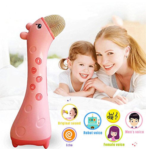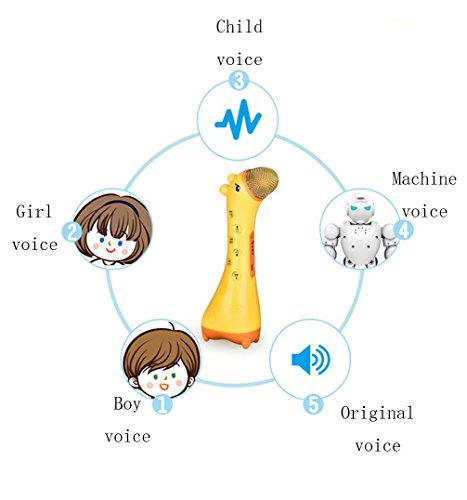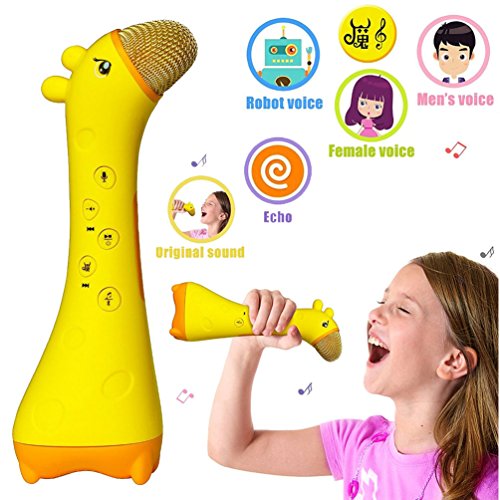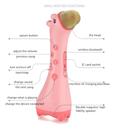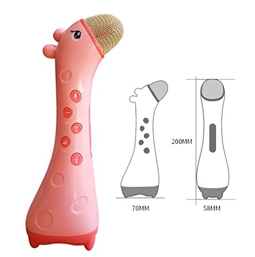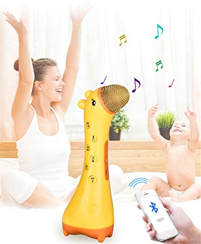 -. Feature : Color:Yellow/Pink Size:200*70*58mm / Multi-function wireless Bluetooth karaoke mic, not only use as mic for kids to learn languages, sing songs, but also can record the voice and replay. Let your kids have fun when learning & be more confident. / Magic sound, Press volume button, you can switch 5 different voices to sing, good for fun mobile phone karaoke, Bluetooth connection with all kinds of smart phone, apply all K song software / Noise reduction, by adopting the tech of anti noise, clear sound, protect children¡¯s ears from shrill scream harm. / Package including:1 X Microphone toy, 1 X USB charge wire
