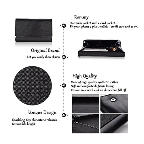 -. Feature : EASILY SHOW CHARM: Sparkling tiny rhinestone releases Irresistible bright ,Every customized colors can make you more graceful. / HIGH QUALITY: Made of Synthetic leather. This clutch purse is very durable with colorfast and detachable chain strap, Soft and comfortable fabric lining, Each clutch bag is carefully selected to ensure no scratch and no rhinestone fall off. / ROOMY: This clutch purse for women has a main pocket and a card pocket, It can fit your key fob,iphone7 Plus, lip gloss, wallet and some credit card. Approx Size: Length:11 , Width: 1.8 , Height:6.9 (inch) , Strap Drop (MAX) :22(inch). / DIFFERENT OCCASIONS :This elegant clutch purse is easy to match and suitable for any style of clothes,Ideal for wedding, party, prom, ball, cocktail, family reunion and evening events and so on. / EXCELLENT SERVICE: We pay great attention to our customer service, and we'll try our best to provide you with excellent purchasing experience. We love our customers and will be happy to solve your issue.