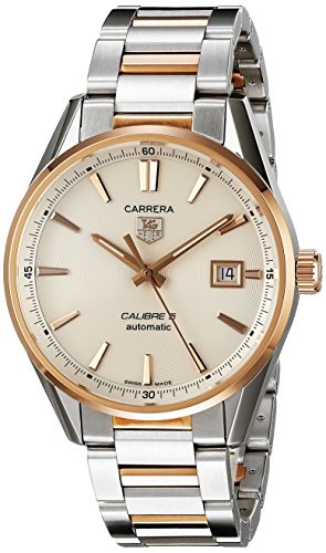 -. Binding : Watch -. Brand : TAG Heuer -. Color : Silver -. Department : mens -. EAN : 0683498430063 -. Feature : Stainless steel case with a stainless steel bracelet with 18kt rose gold accents. Fixed 18kt rose gold bezel. Silver dial with rose gold hands and index hour markers. / Date display at the 3 o'clock position. Automatic movement with a 38 hour power reserve. Scratch resistant sapphire crystal. Pull / push crown. Skeleton case back. / Swiss-automatic Movement / Case Diameter: 39mm / Water Resistant To 330 Feet -. Label : TAG Heuer -. Manufacturer : TAG Heuer -. Model : WAR215D.BD0784 -. MPN : WAR215D.BD0784 -. PackageQuantity : 1 -. PartNumber : WAR215D.BD0784 -. ProductGroup : Watch -. ProductTypeName : WATCH -. Publisher : TAG Heuer -. Studio : TAG Heuer -. Title : TAG Heuer Men's WAR215D.BD0784 Analog Display Swiss Automatic Two Tone Watch -. UPC : 683498430063