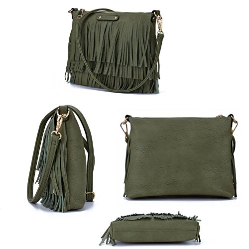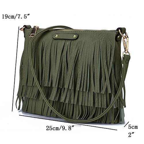JIARUO Fashion Tassel Fringe Handbag For Women PU Leather Shoulder Bags Ladies Crossbody Bags