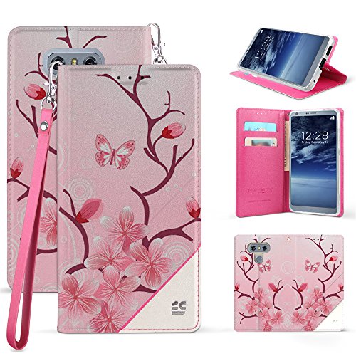 -. Title : LG G6 Case PU Leather TPU 2 Tone Card Slot Magnetic Close Strap Kickstand Cherry Blossom