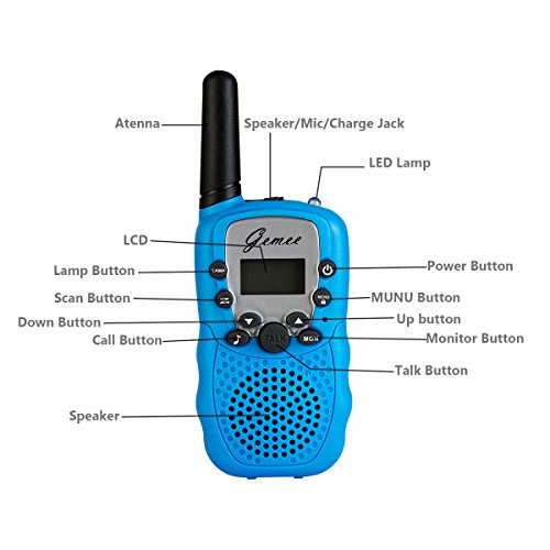 Rechargeable Walkie-Talkies - GEMEE 1 Pair UHF462-467MHz 22 Channel FRS/GMRS Two-Way Raidos Walkie Talkies with Rechargable Batterry and Charger - 2 Pcs ( Blue )