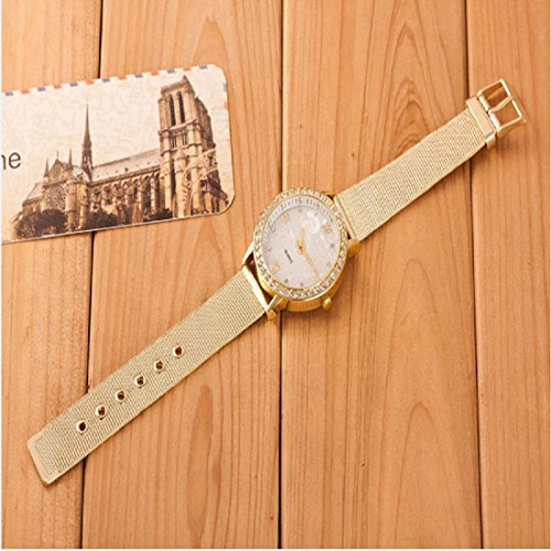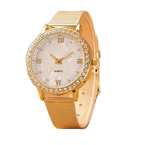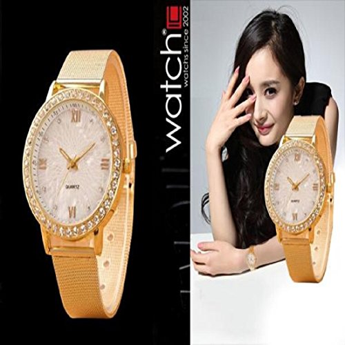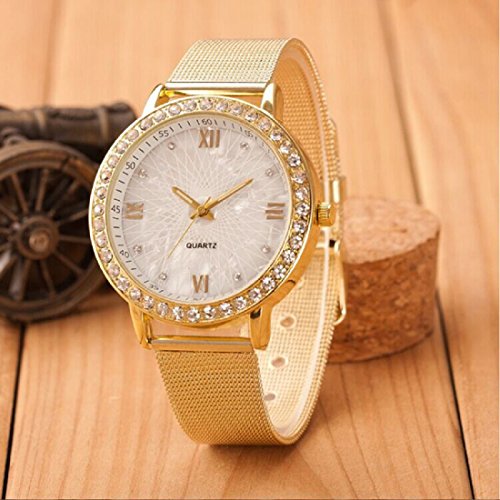 -. Title : Hemlock Round Womens Crystal Diamond Watch Stainless Steel Band Quartz Dial Gold Wrist Watch