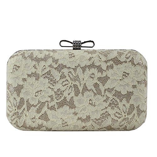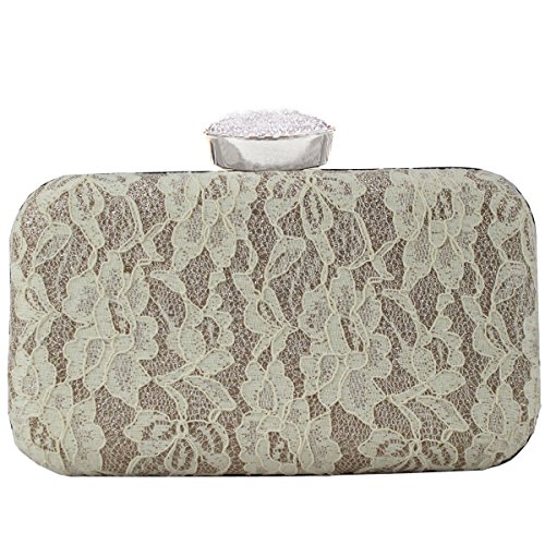 Features:beaded clasp,lace fabric,hard case