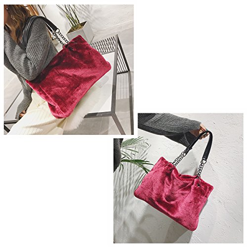 -. Title : Womens Korean Style Fur Bag Top Handle Handbag Tote Bag with Chain Strap