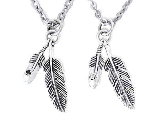 -. Title : 【ヴェルヴィ】 シルバー 925 フェザー ハート ペア ネックレス メンズ レディース (紙袋 BOX付き) tb316