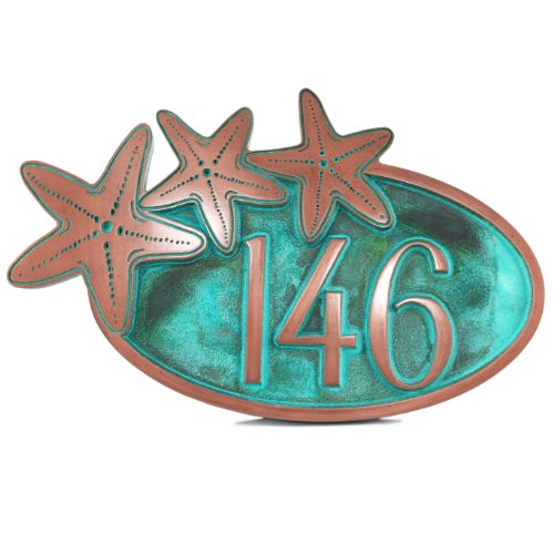 -. Brand : Atlas Signs and Plaques -. Color : raised copper with blue green verdi background -. EAN : 0812122021463 -. Feature : Handcrafted and made in the USA with products from the USA. Custom made for you. / Comes with keyhole style mounting and screws. Template is also included for easy installation by you / Made of 30 pound HDU (type of plastic) that won't warp, rot or promote insects and is fine outside. / Coated with a metal coating that won't flake or peel. Looks like cast but at fraction of the price. / Size is 15x9x1 inches. Lettering will be raised and plaque will be metal coated in our Copper Verdi. -. Label : Atlas Signs and Plaques -. Manufacturer : Atlas Signs and Plaques -. ProductGroup : Home Improvement -. ProductTypeName : HARDWARE -. Publisher : Atlas Signs and Plaques -. Studio : Atlas Signs and Plaques -. Title : Starfish Oval Plaque 15 x 9 -Raised Copper Verdi Metal Coated -. UPC : 812122021463