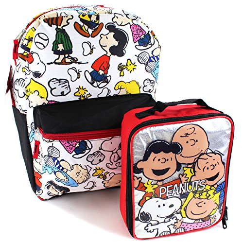 -. Brand : Yankee Toy Box -. Color : Multi -. Department : girls -. Feature : Backpack measures approximately 16" x 13" x 5.5"; Lunch Box measures approximately 8.5" x 10" x 3.5" / Backpack: Adjustable padded shoulder straps; Front zip-up pocket; Side pockets; Hanging locker loop; Zipper closure / Lunch box: Insulated; Holding handle; Zipper closure; Food-safe and PVC-free / Features The Peanuts Characters: / Charlie Brown, Peppermint Patty, Snoopy, Woodstock, Lucy and more! -. PackageQuantity : 1 -. ProductGroup : Apparel -. ProductTypeName : LAGE -. Size : One Size -. Title : Peanuts Snoopy 16 inch Backpack and Lunch Box Set