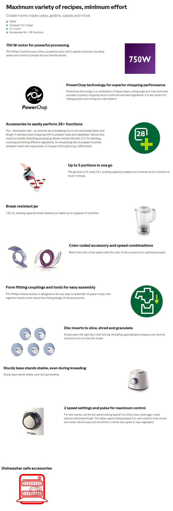 Safety : Lid & bowl detection, mechanical 1.5 sec brake