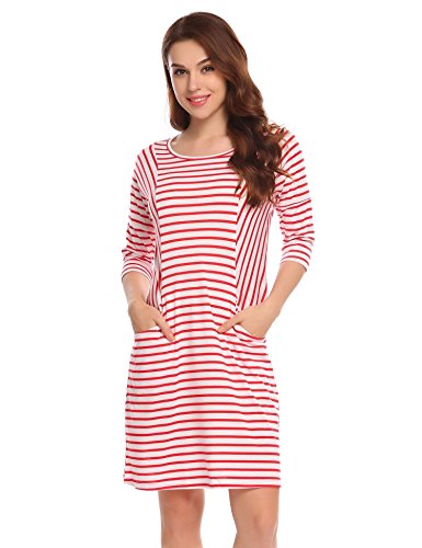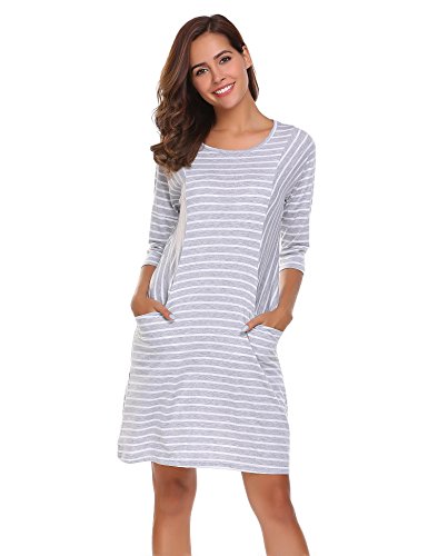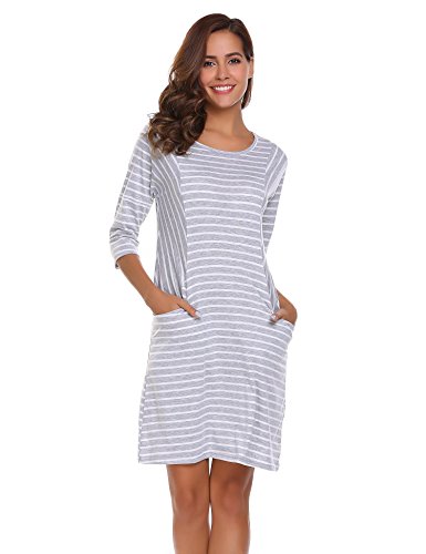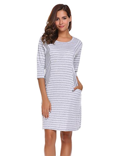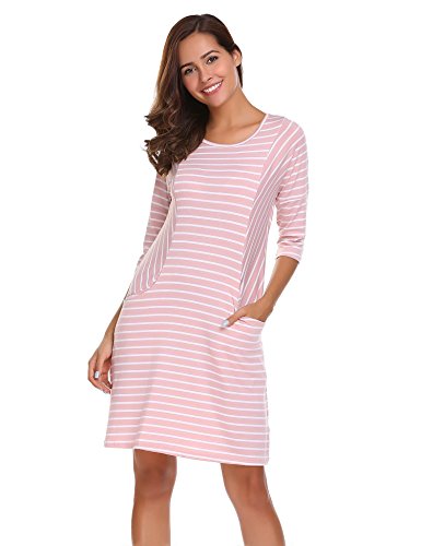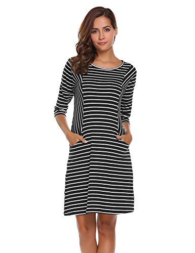 Unibelle Women's Casual 3/4 Sleeve Loose Striped T Shirt Dress with Pockets