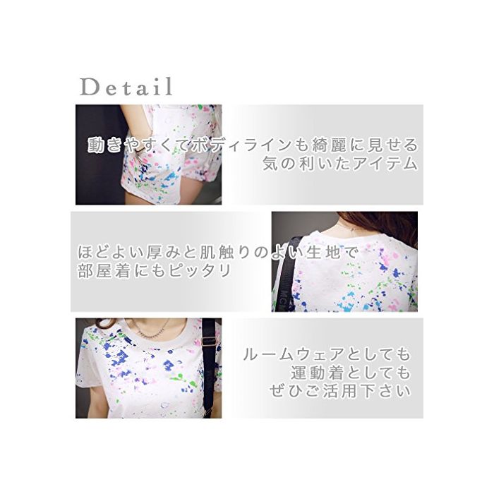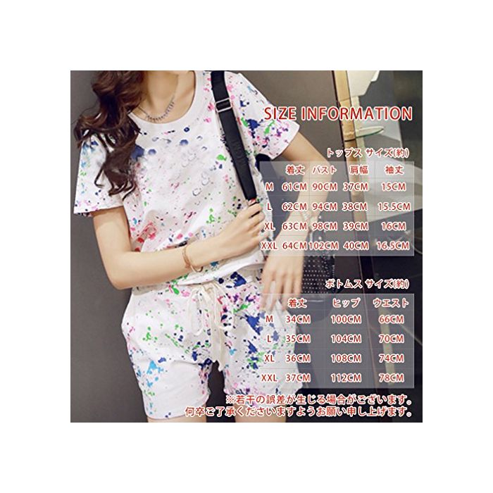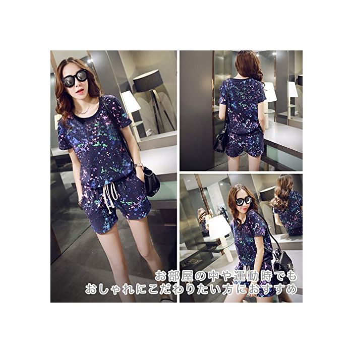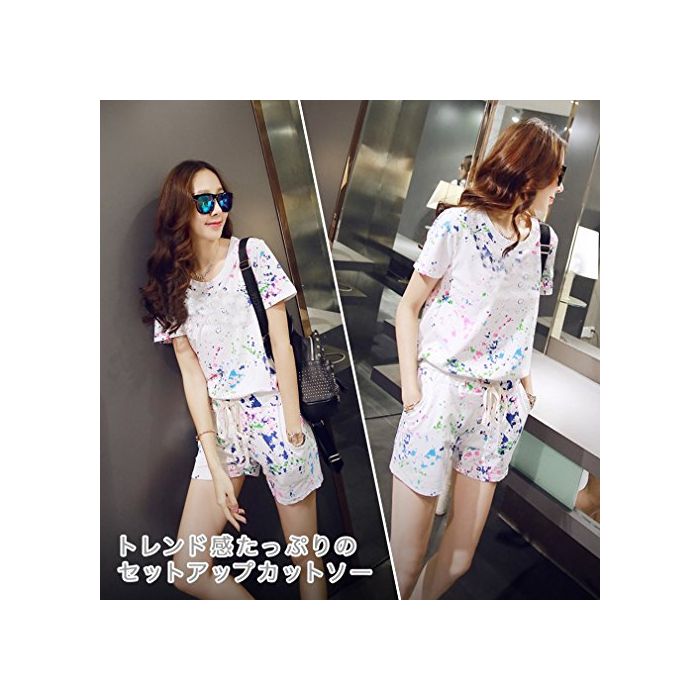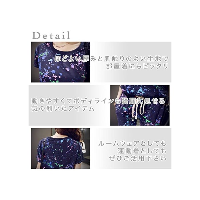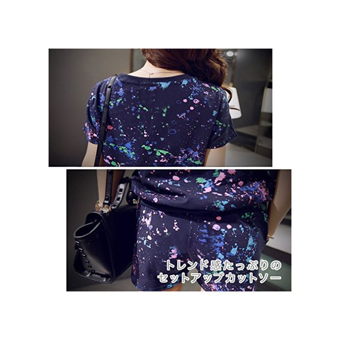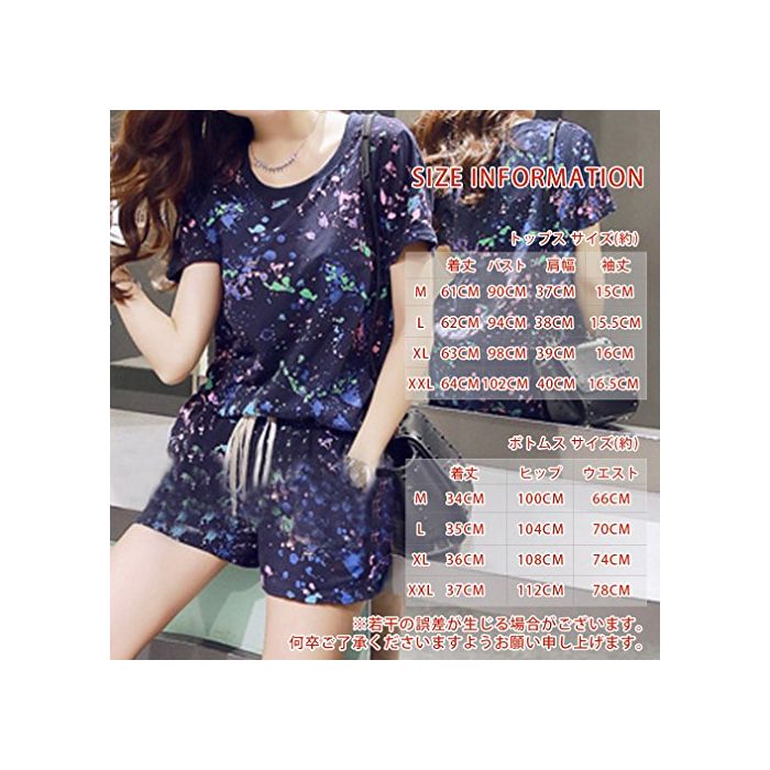원본상품명: Meilleur reve(メイヤリブ)【選べる2色&4サイズ】 レディス 上下 半袖 セットアップ カラフル ルムウェア 部屋着 運動着 スウェット カットソ