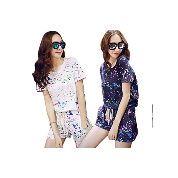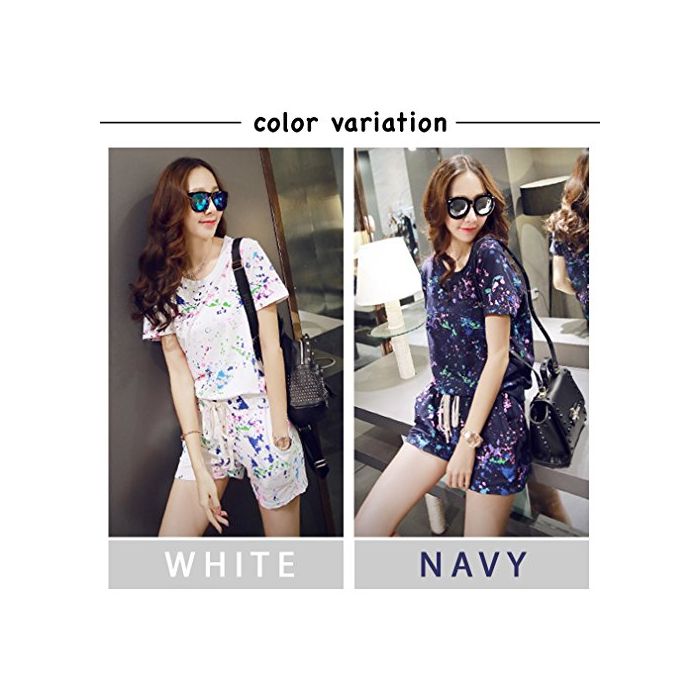 Meilleur reve(메이 자 리브)【선택가능 2색&4사이즈】 레이디스 상하 반소매 셋업 컬러풀 룸 웨어 실내복 운동복 스웨트 컷소우