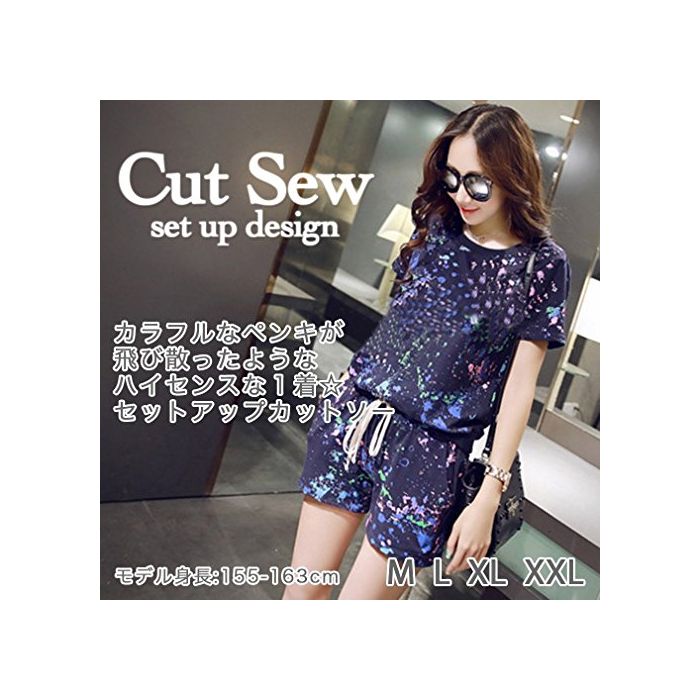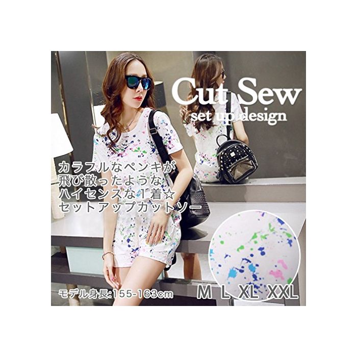 컬러풀한 페인트가 튀었던 바와 같은 하이 센스인 1벌☆셋업 컷소우입니다.