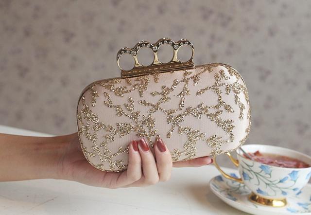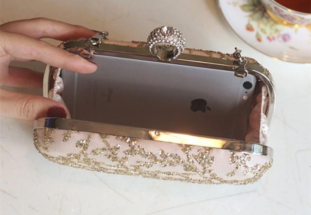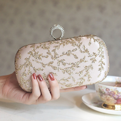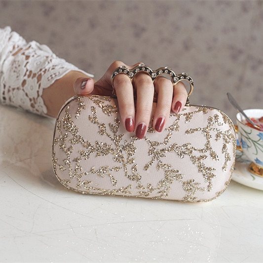 レディースファッション アパレル バッグ 刺繍 指輪リング クラッチ ストラップ パーティー 結婚式 合金 バッグ エレガント