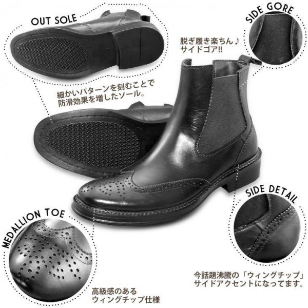 スーツを着ていると紳士靴を履いているように見えます。スタイリッシュなウイングチップサイドゴアレインブーツ♪