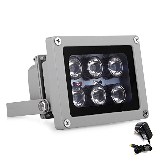 -. Feature : Automatic Switch--Built-in photosensitive sensor,turn off at daytime and turn on at night.Special designed for day&night security cameras. / 6pcs high power LED array lights, wave length: 850nm. High-quality LED chips and PMMA lens,ensure the high brightness, high stability,and long life / Waterproof IP65 for both outdoor and indoor use. With high quality aluminum case and reinforced glass window / Size:115mm*85mm*7mm.Work with CCTV camera and IP camera. Greatly improve the performance for weak light cameras, help producing better night vision image. / Supports 12V DC/1A(5.5x2.1mm) input voltage, (power adapter included)